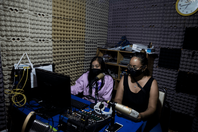 Jóvenes participan en la estación de radio comunitaria