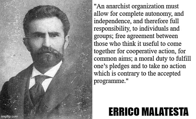 He stressed that anarchists must always operate from outside and against government, using street agitation to pressure authorities and achieve demands, rather than seeking legislative positions.