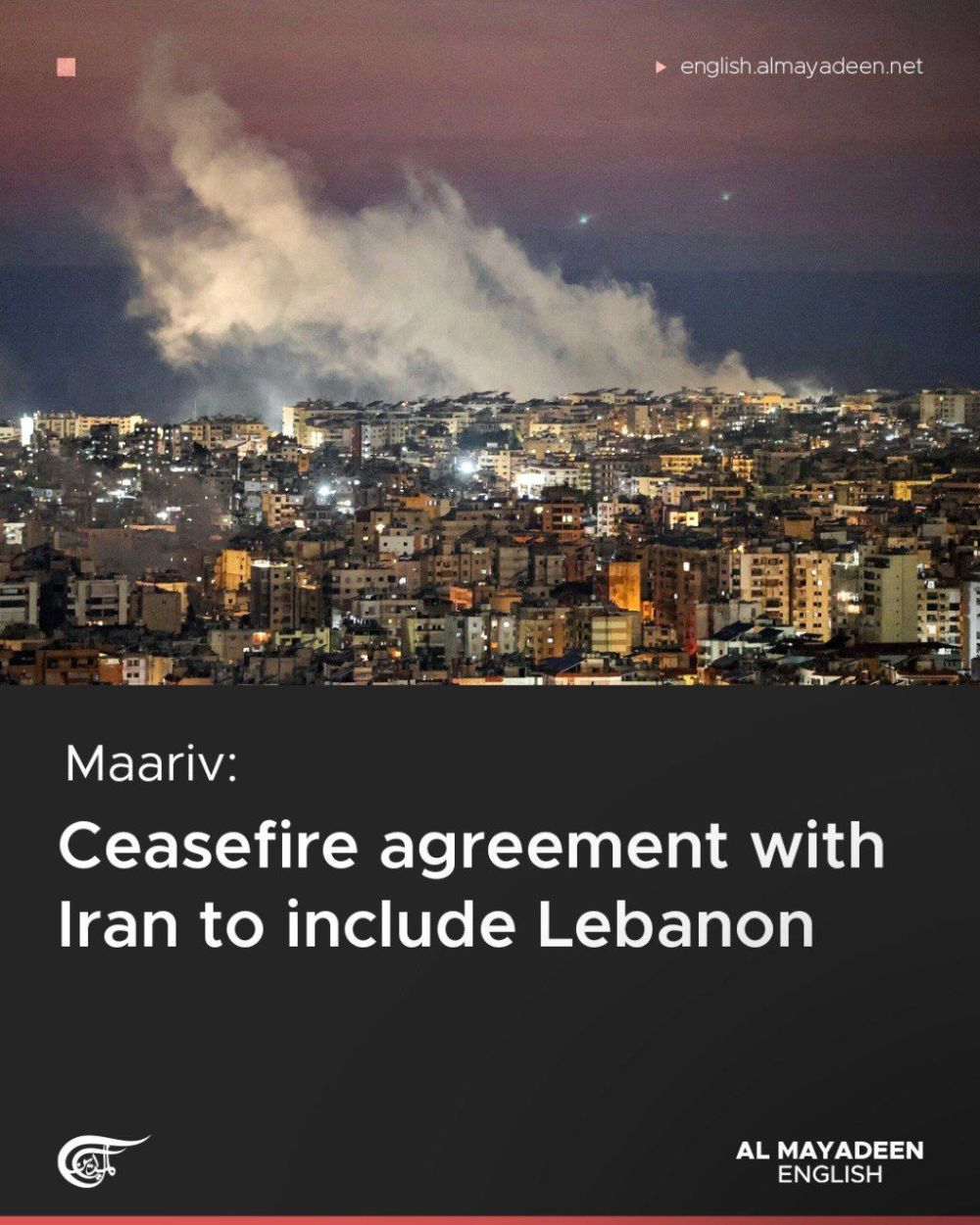 Israeli newspaper Maariv reports that the ceasefire agreement reached between Iran and the United States and the Israeli occupation will include Lebanon and should see a cessation of hostilities on Lebanese territory.
