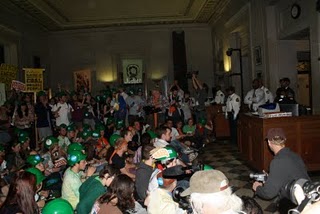 Washington D.C.—Hundreds of climate activists marched to the Department of the Interior’s headquarters today, with twenty people committing civil disobedience inside, calling for the abolition of offshore oil drilling, coal mining and tar sands extraction. Reclaim Power led hundreds from Lafayette Park to the agency’s headquarters in Washington D.C. the same day after Powershift, a mass youth climate conference, ended and 2 days before the one year anniversary of the BP Gulf Oil Disaster.