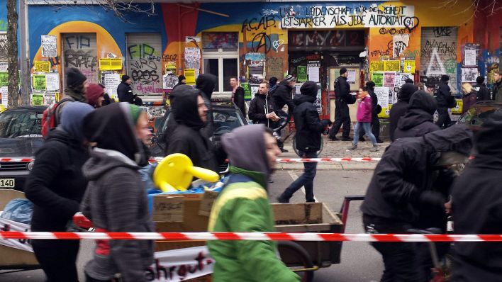 Occupied buildings in the district are seen as landmarks in the left and anarchist scene in the capital.