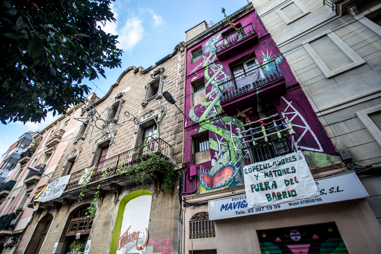 Evictions in the Raval neighbourhood are a daily occurance , sometimes up to 5 a day. In recent years anarchist groups have promoted a growing practical solidarity network to block evictions and help homeless victims.
