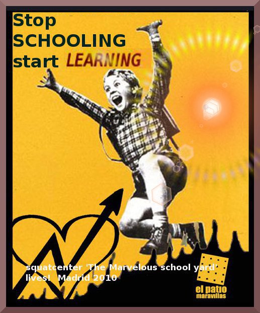 This site is hosting 'The Free', a novel set in the coming collapse of Capitalism. In the story schools, along with most State institutions,  close down due to lack of funds, but community based free schools  take over. Based on self education groups and online OpenUni courses these youth culture gangs are recruited by the Free CoOps as the 'clan militias' which defend the anti capitalist revolution.  You can download the amazing 462 page book here for free, or read it online.