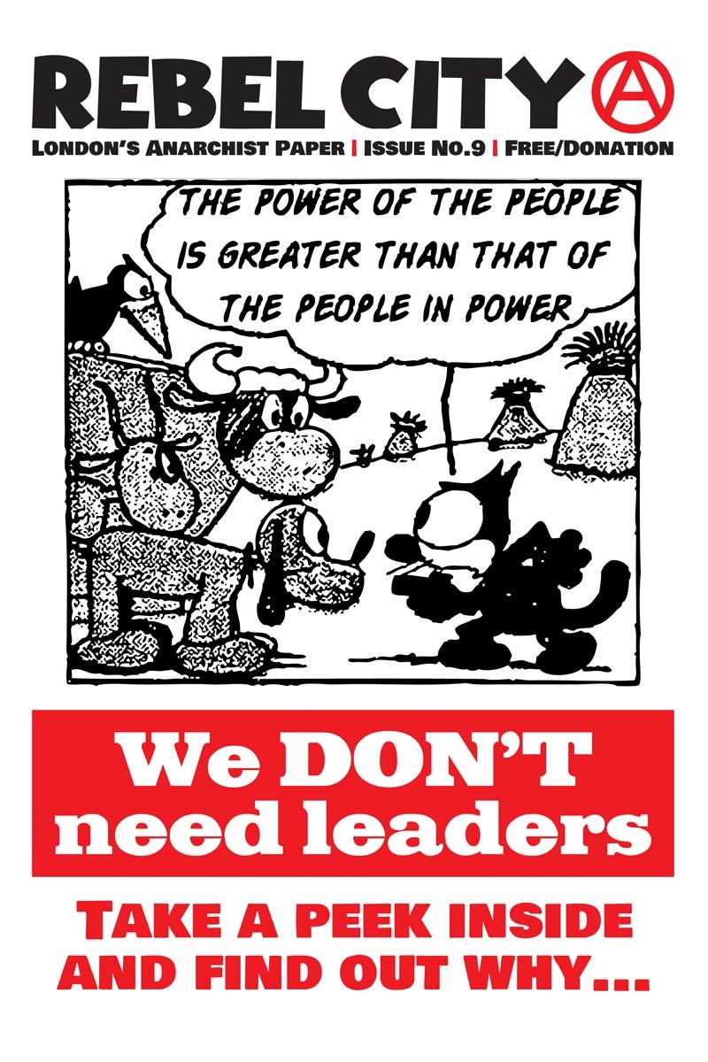 Read London Anarchist Federation’s 12-page paper Rebel City online. The latest issue No. 19 is hot off the press and back issues are all free to download. Print copies are also available from London AF or can be found in local radical bookshops and social centres..