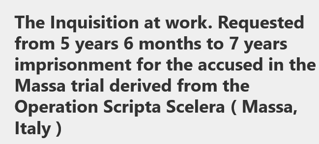 At the end of the indictment held at the previous hearing on April 1st, public prosecutor Manotti of the DDAA (‘Anti-Mafia and Anti-Terrorism District Directorate’) of Genoa had requested 7 years’ imprisonment for Gino, 6 years for Luigi (with the revocation of the suspended sentence for a previous conviction imposed on him by the court of Ravenna) and 5 years and 6 months each for Gaia and Paolo, while the State attorney for the presidency of the council of ministers had requested compensation of half a million euro.