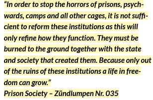 It was aimed at shutting down the anarchist internationalist fortnightly magazine “Bezmotivny”, thereby striking the action of publication of analysis and reflection as well as, and in particular, texts claiming actions, sabotage and initiatives of attack undertaken by anarchists and revolutionaries throughout the world against the State and capital.