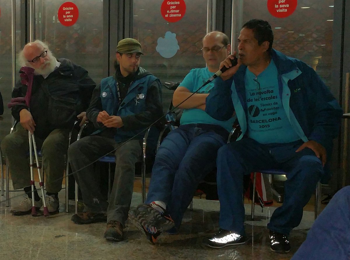 The lobby was filled with talks and debates which have included the participation of the workers in the Telefonica struggle, the Barcelona Metropolitan Transport strikers(TMB), the Auditorium and Liceu conflicts, the movement against mortgage evictions PAH, the Union of Popular Street Vendors , All Strike, the Stop the Fare Rises platform, the writer Joni D. and the bus driver and the councillor Josep Garganté CUP.