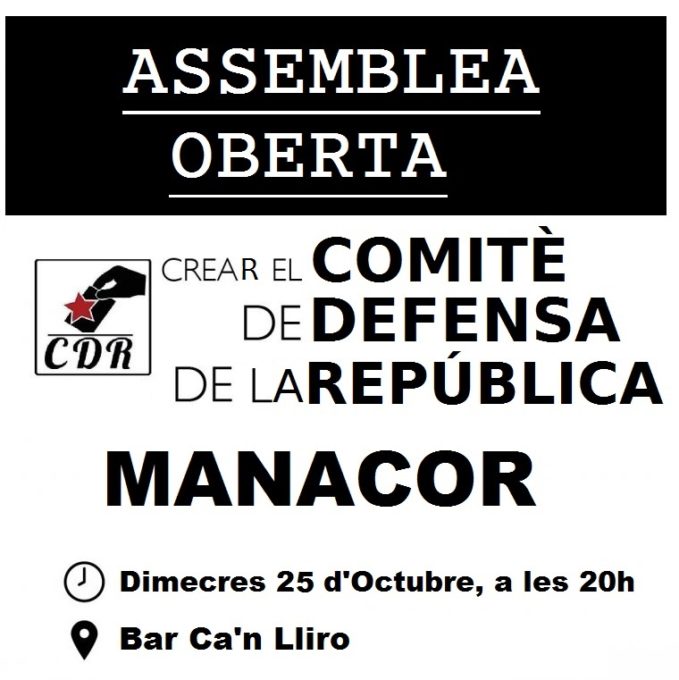 The CDRs are a network of autonomous, horizontally organized, local defense groups which sprang up in response to the massive violent crackdown by the Spanish State on the Catalan Referendum which voted for a Republic.