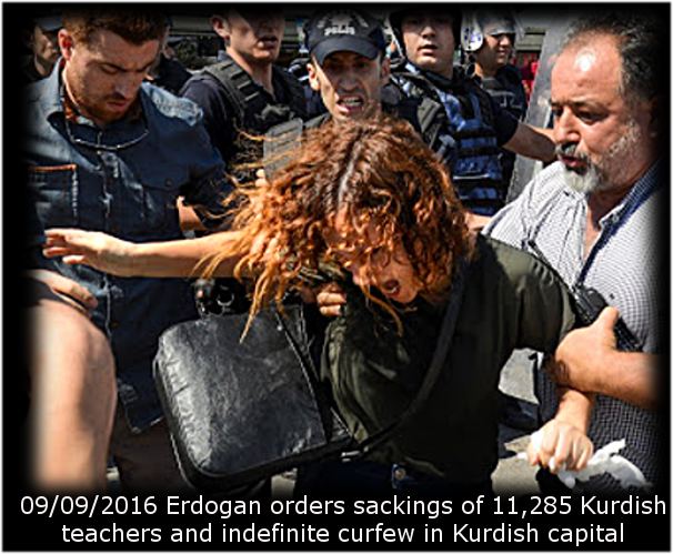The all powerful Turkish leader Erdogan just dismissed 11,285 Kurdish teachers for maybe not supporting a military crackdown, mass state murders and prohibition of their own language. But you won’t read this in the NY Times, or see it on the BBC or CNN.
