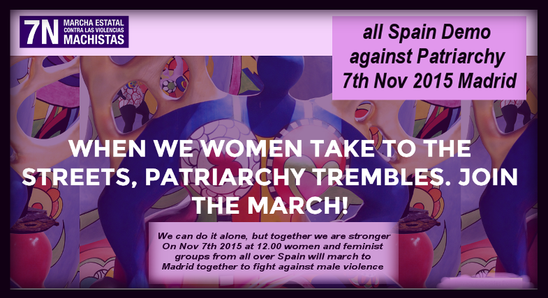 More than 60 women representing feminist organizations and platforms have been meeting in Madrid on Saturday to advance in the call for the March Against Violence sexist next 7N, from more than 150 groups, associations and groups of the 17 autonomous communities who acceded to the call of the Feminist Movement, which also has the support of political parties and unions. Continue reading “Smash Patriarchy: 150 feminist groups hold Mass Demo Sat 7th”