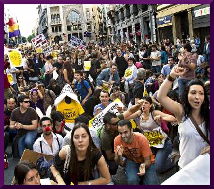 Where this kind of awakening will lead is unclear. General goals are clearly expressed: real democracy based on popular assemblies in the neighbourhoods, reform of the electoral system for different levels of government, the right of referendums including on the European level, an end to cuts and privatisation of public services, banks and finance under public control, economic development based on co-operation, self-management and a social economy – the list is long and elaborate (see here, for example).