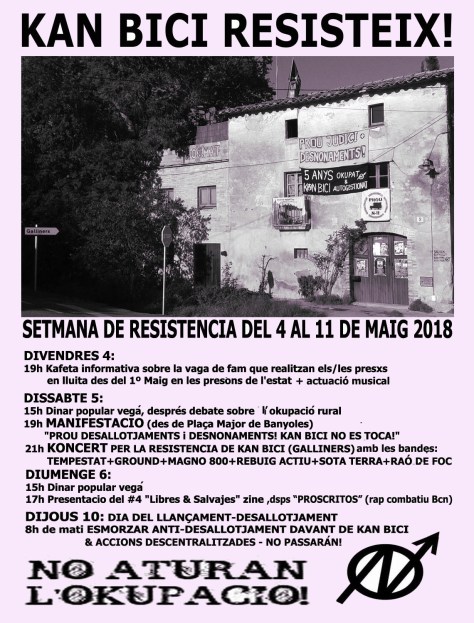 Hi comrades and friends! The eviction of Kan Bici is probably taking place on May 10th 2018 and it is assumed that the “forces of order” will do their dirty work in one way another.