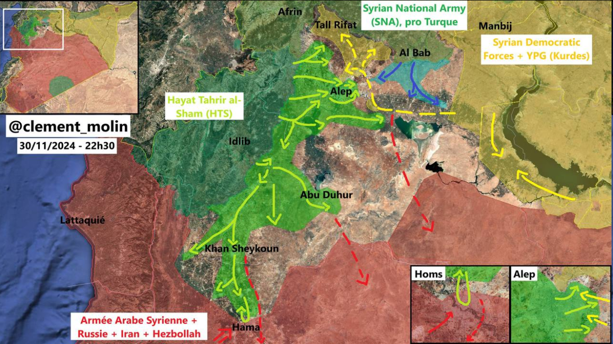 Syria, Russia and Iran have already rushed to confront the Turkish and US (and probably Israeli) funded HTS/Al Qaeda warlord’s breakout from the Idlib statelet. The Rojava multi-ethnic SDF forces have also broken out and are confronting the Jihadis in Aleppo city and Tel Rifaat